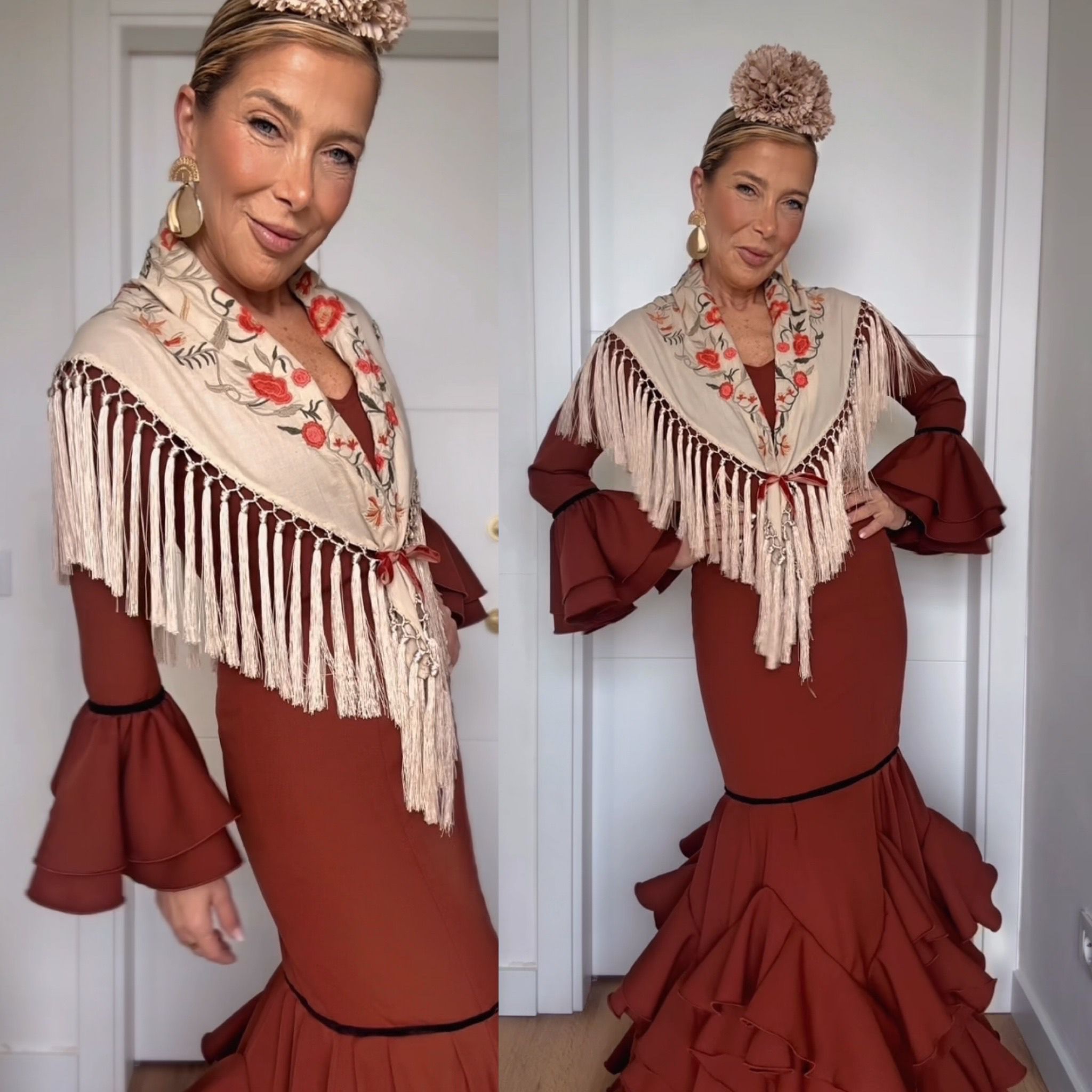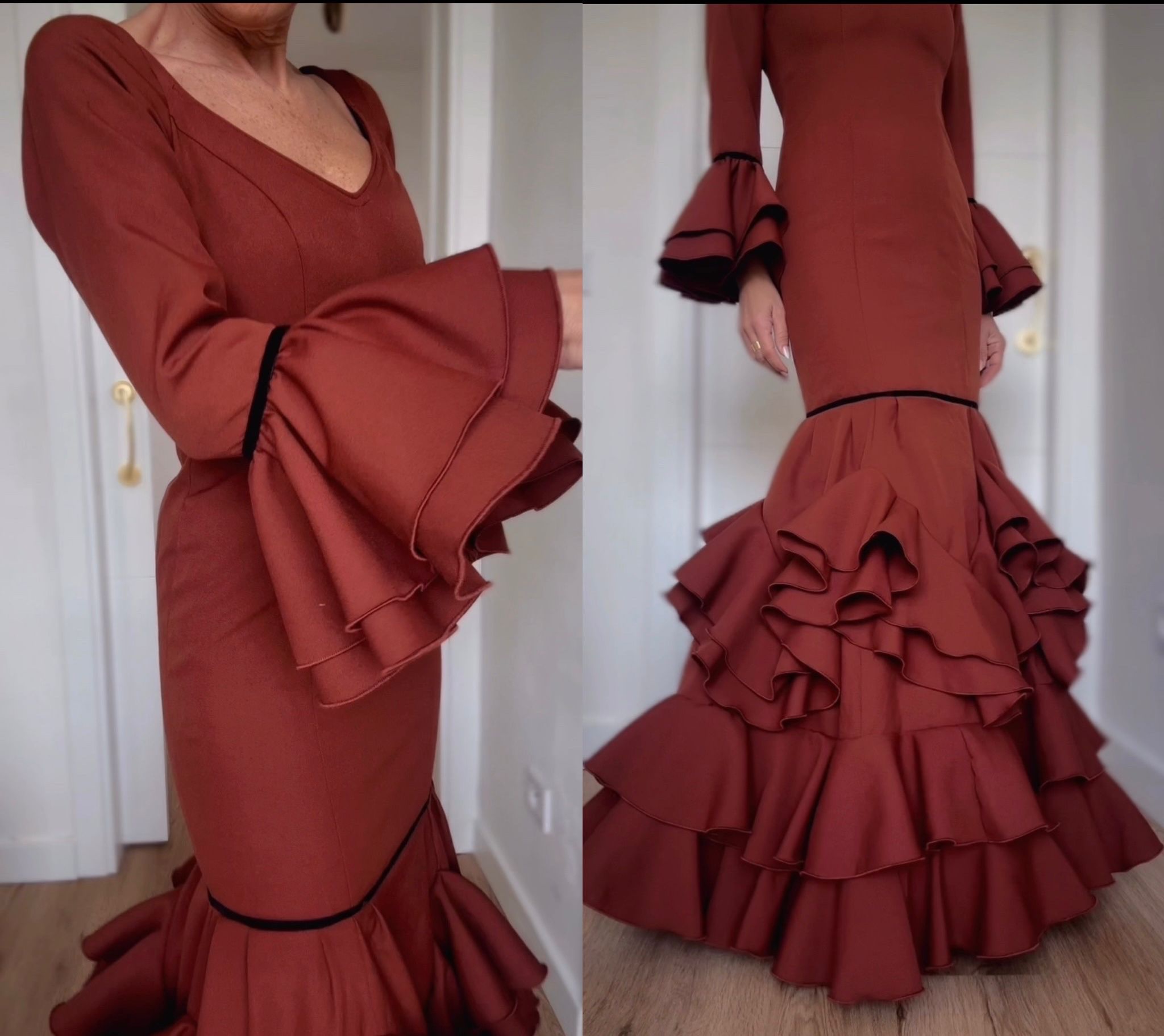 Traje Corte Canastero con pequeños volantes.